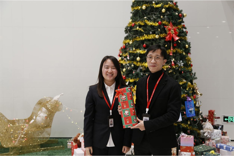 團(tuán)拜會后,我們舉行了因疫情而遲來的圣誕禮物互換活動。活動前,各位員工精心挑選了互贈同事的禮物,既有衣服配飾,又有文創(chuàng)產(chǎn)品等等,這些禮物蘊(yùn)含了大家的溫暖關(guān)心和美好祝愿。在給禮物貼上抽獎(jiǎng)代號后,員工們在歡笑喜樂的氣氛中各自抽取禮物。禮物互換,傳遞的不僅僅是一份禮物,更是員工們之間深深的情意。大家紛紛許下美好的新年愿望,用相機(jī)手機(jī)拍下歡樂場景,留下美好回憶。