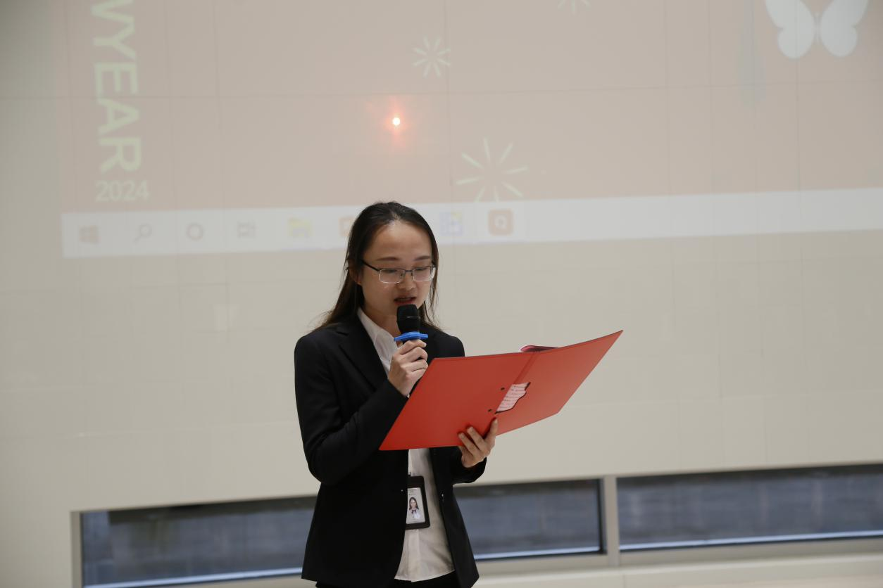 單達副總經理、張小穎總工程師、許星麗院長、周婷所長分別宣讀了2024年公司一號、二號、三號、四號表彰文件,并為先進集體和個人頒獎。老員工代表周婷、李武君、朱洪、陳志文,和新員工代表戴文、岳鑫分別上臺發表新年感言。